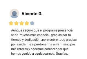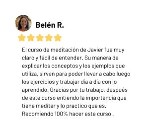 «Este curso me llevó a empezar un camino que nunca antes había recorrido, un camino desconocido para mí que me invitó a empezar a construir mi nuevo yo, mi nueva versión y que me condujo a este mundo maravilloso de la meditación. Agradecer a Javier Hernández todo lo que me aportó y los cambios internos que se produjeron en mí…»