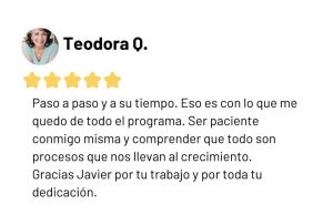 Conozco a Javier desde hace más de 15 años y conectamos desde el principio. Su creatividad y su experiencia me han ayudado a sanar y crecer en muchos aspectos de mi vida. Lo bueno de Javi es que la información la transmite de forma sencilla y muy didáctica, eso hace que cualquiera pueda llevar a cabo todas sus enseñanzas.Os recomiendo sus formaciones al 100%.