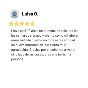 «Esta método de meditación me ha dejado un desarrollo y una plena consciencia en los 5 sentidos. Además de una seguridad y una paz para seguir practicándola en mi día a día.»